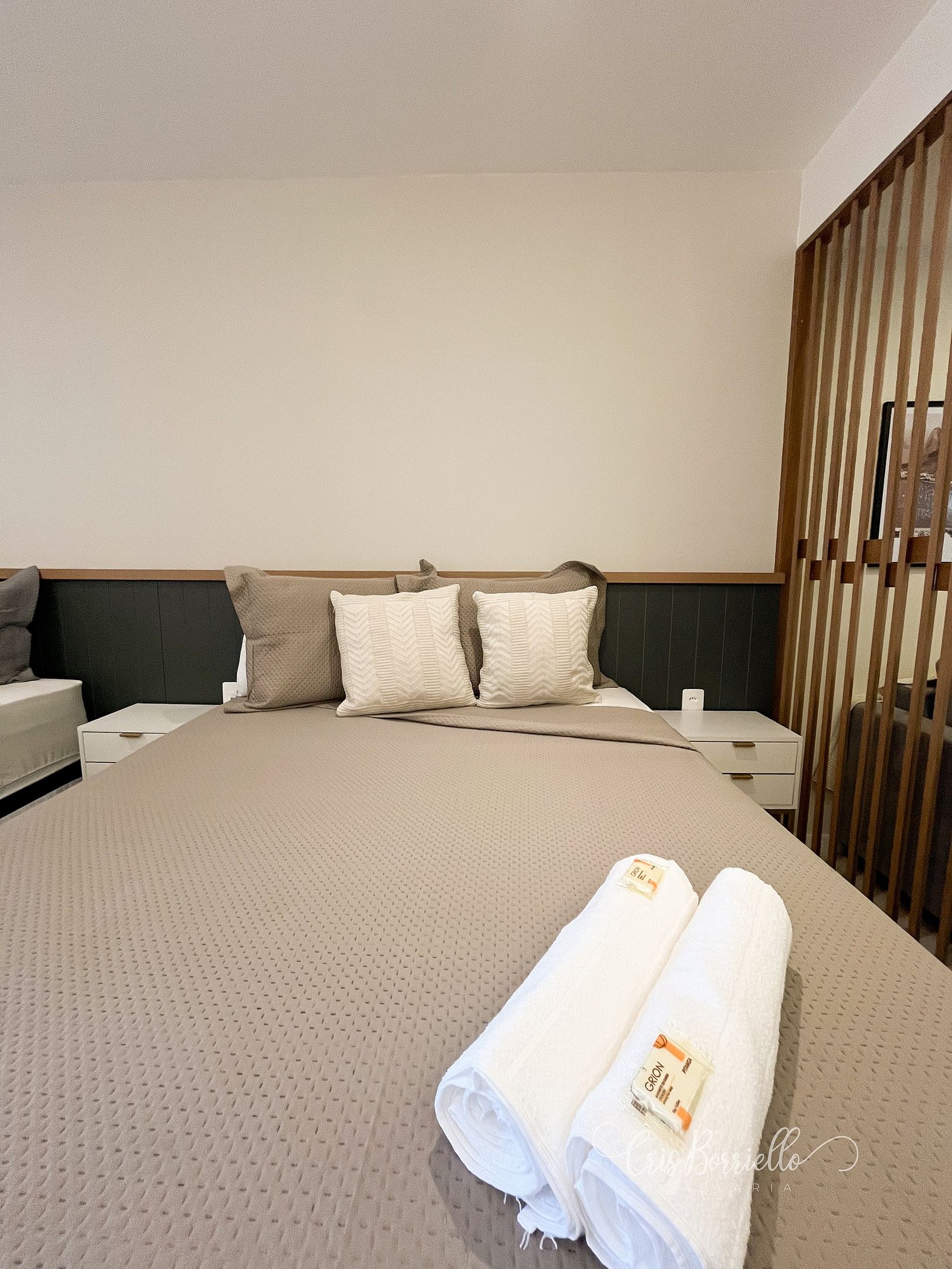 Todos os hóspedes da reserva terão à disposição roupas de cama, toalhas de banho e travesseiros em quantidade suficiente. Parte estará posicionada na cama de casal e o restante ficará organizado no armário, de fácil acesso aos hóspedes.