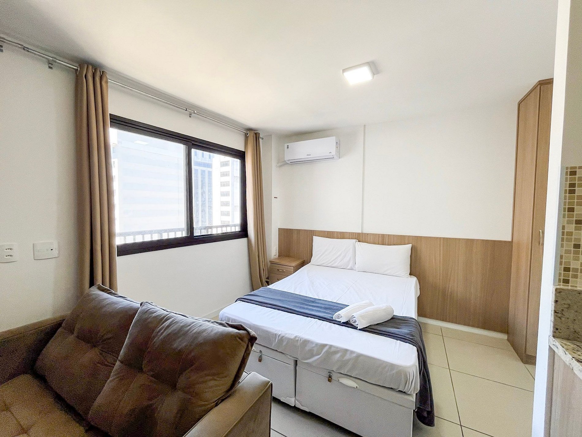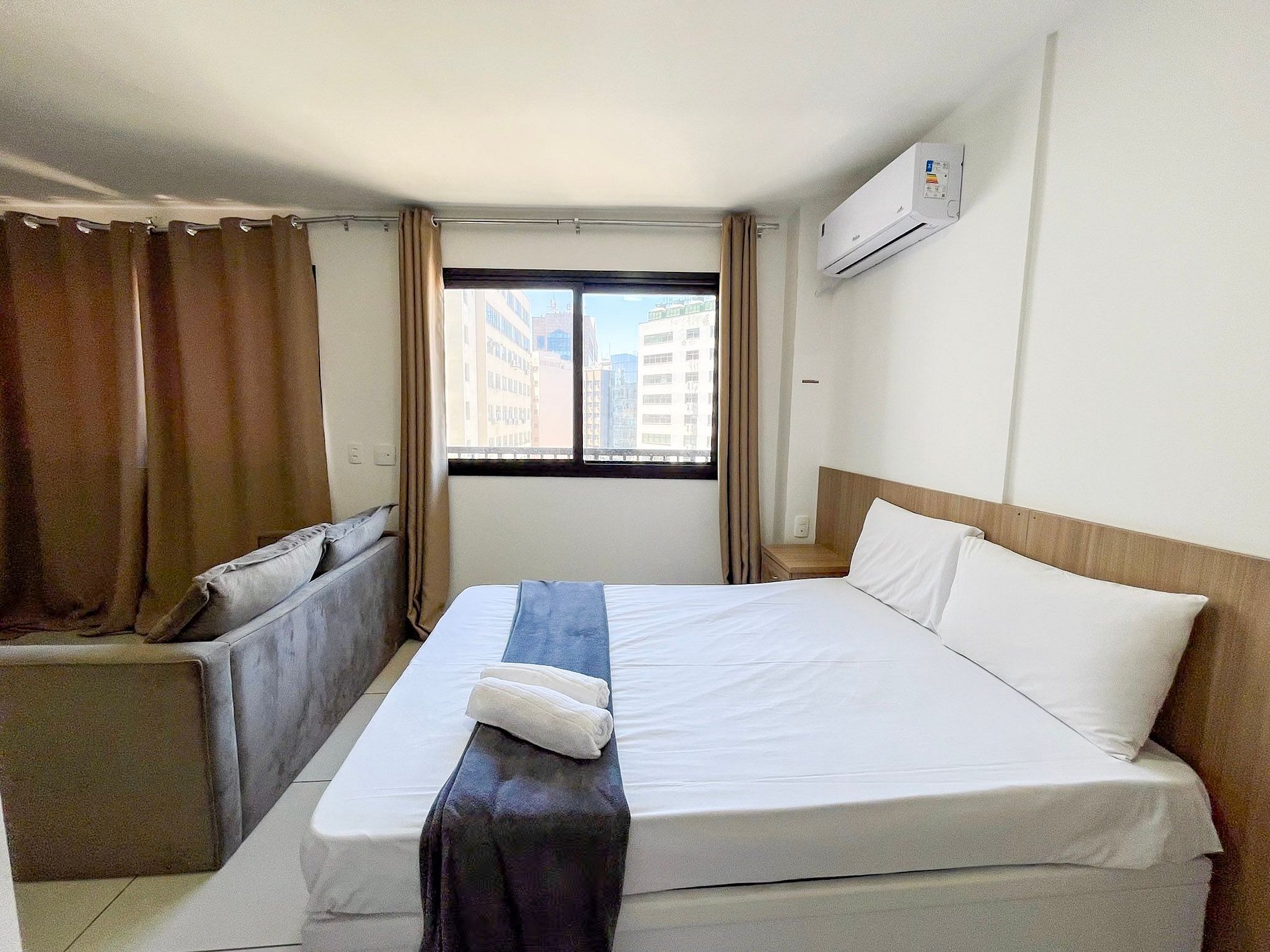 Studio central com 42m2, Suite, Cozinha, comporta 6 pessoas, fechadura eletrônica, geladeira, Cama e sofá Cama, mesa para trabalho, TV e Wi-Fi. A melhor localização do Rio ! Venha conferir !
